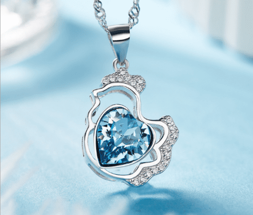 The Heart of Stone Necklace is a stunning addition to your jewellery box. The design is incredibly eccentric, with thin silver wires that loop and form a protective shell around the heart-shaped sapphire Swarovski crystal gemstone.