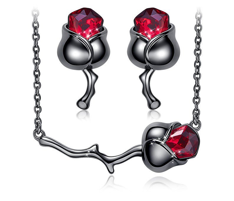 The Obsidian Rose Swarovski Jewellery Set brings dark jewellery to the next level. The outer petals are smoky black but the inners ones are embedded as a Swarovski Crystal. The most appealing aspect of this set is its color and vivid shades.